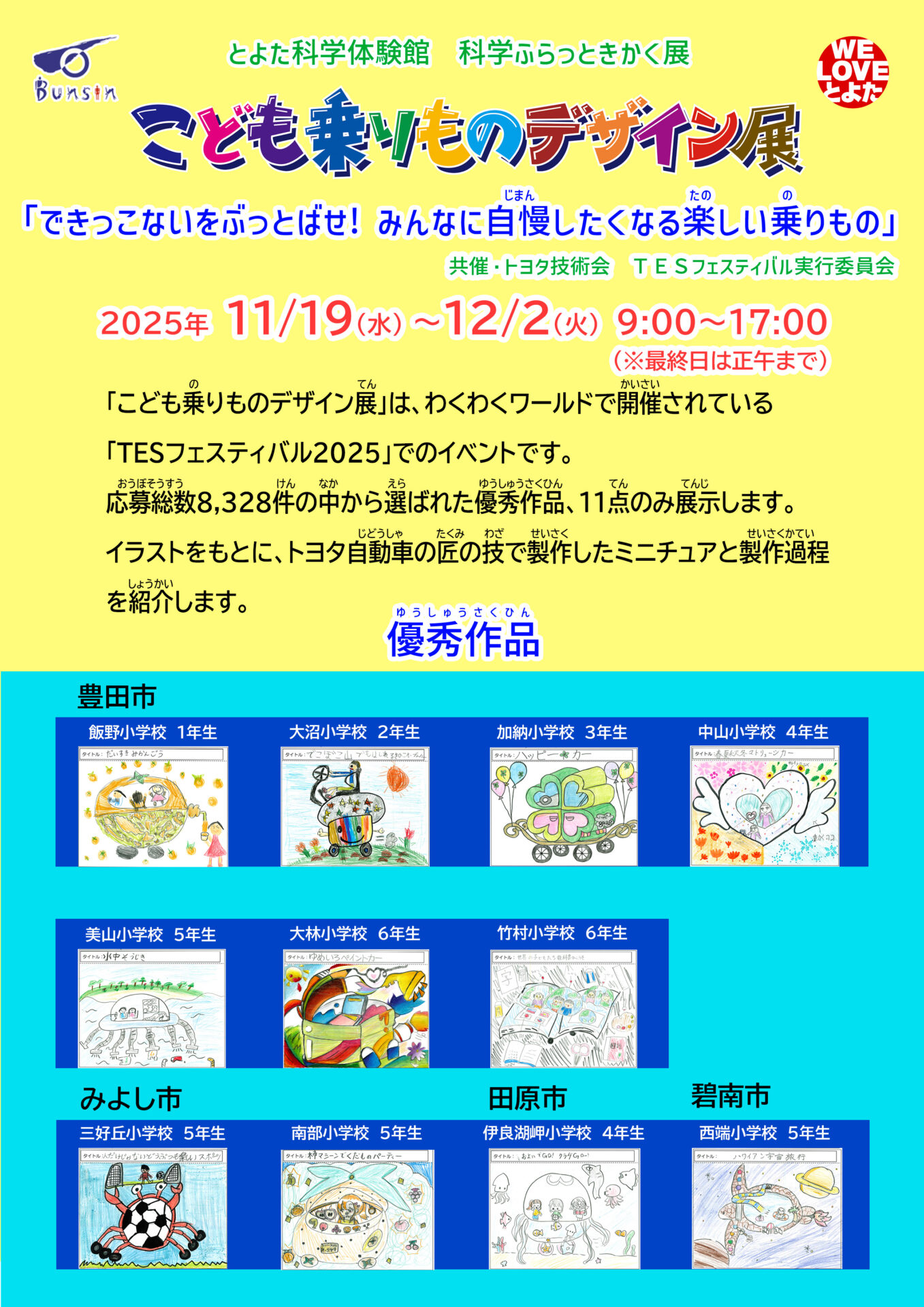 小学生が描いた未来の楽しい乗り物イラストを、トヨタ自動車の方々がミニチュア模型に具現化! こどもたちの個性豊かなデザインと、トヨタ自動車の匠の技をご覧ください。