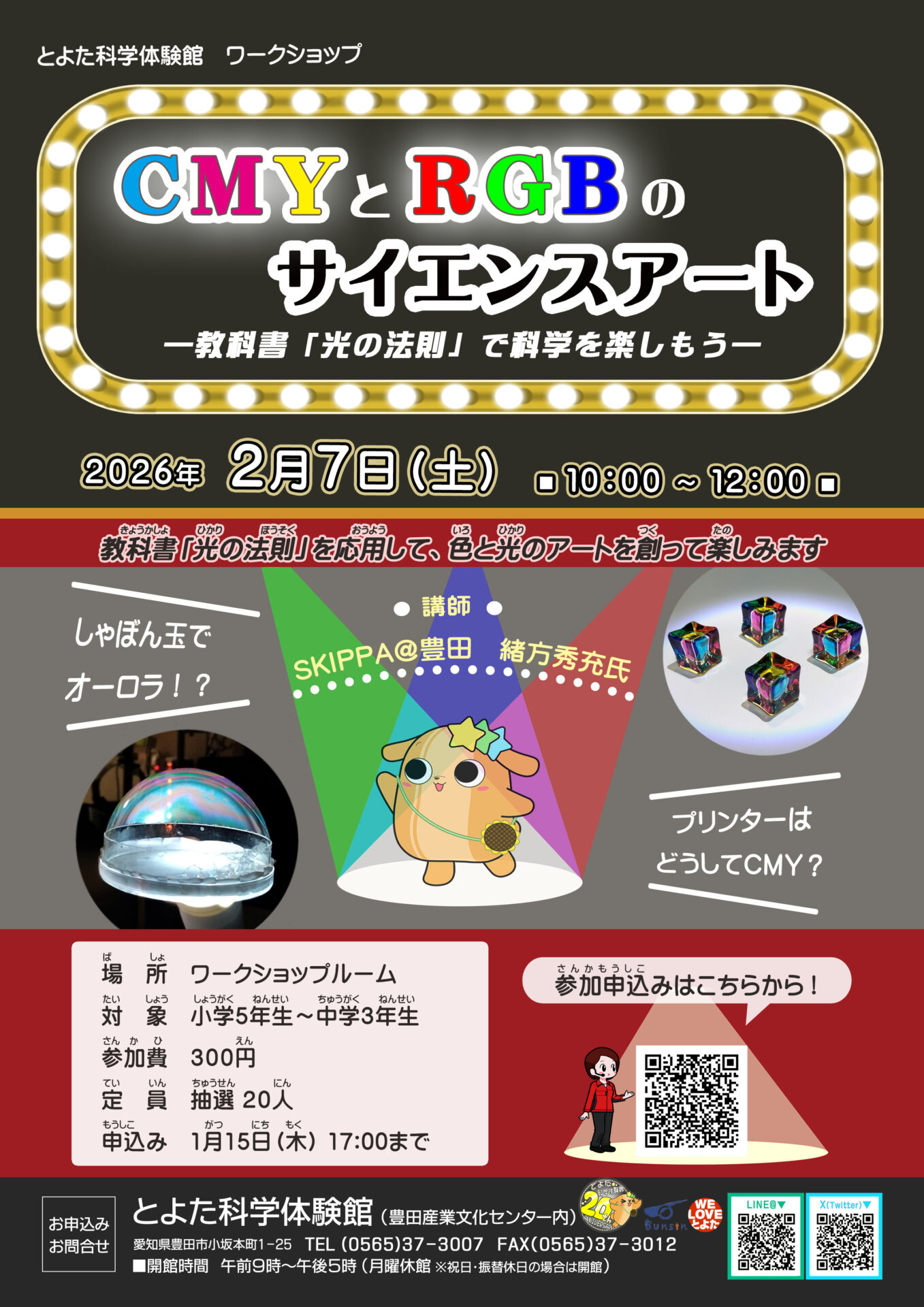 ※ 応募者多数の場合は抽選となり、結果は1月22日(木)までにとよた科学体験館よりメールで連絡を差し上げます。
