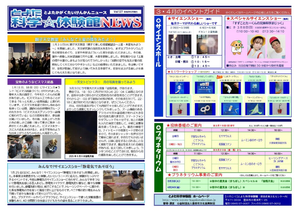とよた科学体験館で開催したイベントの記事や天文トピック、今後のイベント情報を掲載しています