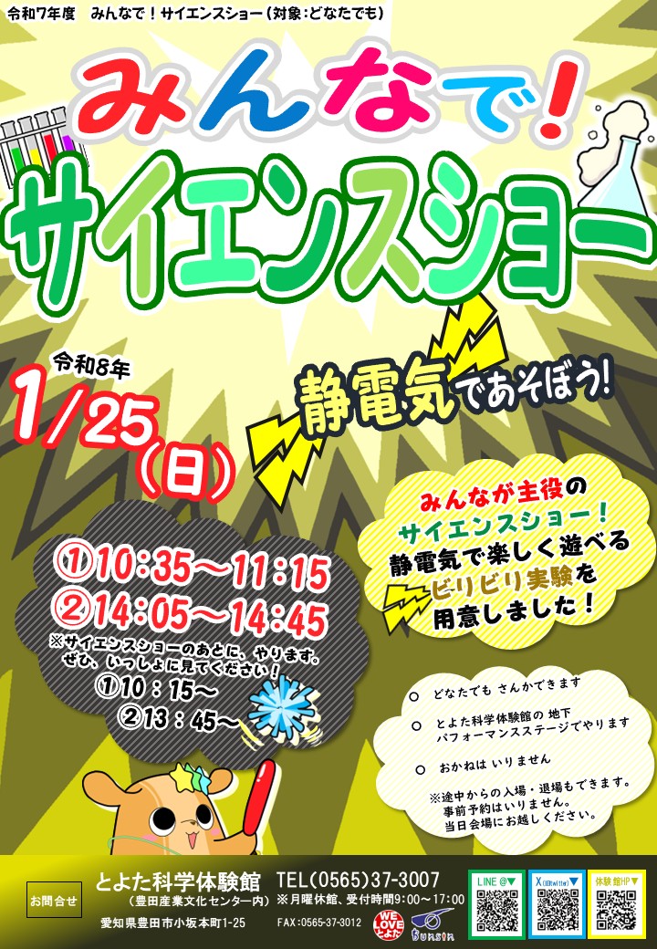 1月25日(日) ※通常のサイエンスショーの後に実施